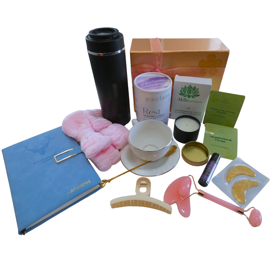 Luxury Women’s Wellness Retreat Kit – Tea, Affirmation, Candle, Sleep Mask & Journal